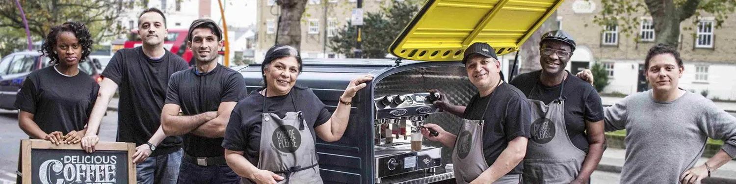 We work with Change Please, a global award-winning coffee company and a social enterprise, who are empowering the homeless community by training them to be baristas.